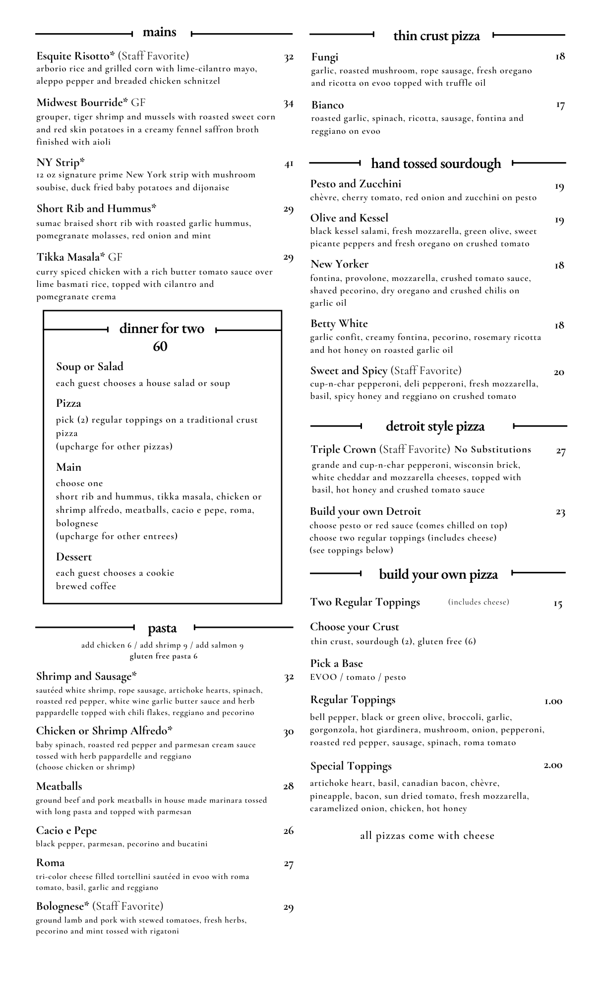 *foods are cooked to order. consuming raw or undercooked foods may increase your chance of food borne illness.