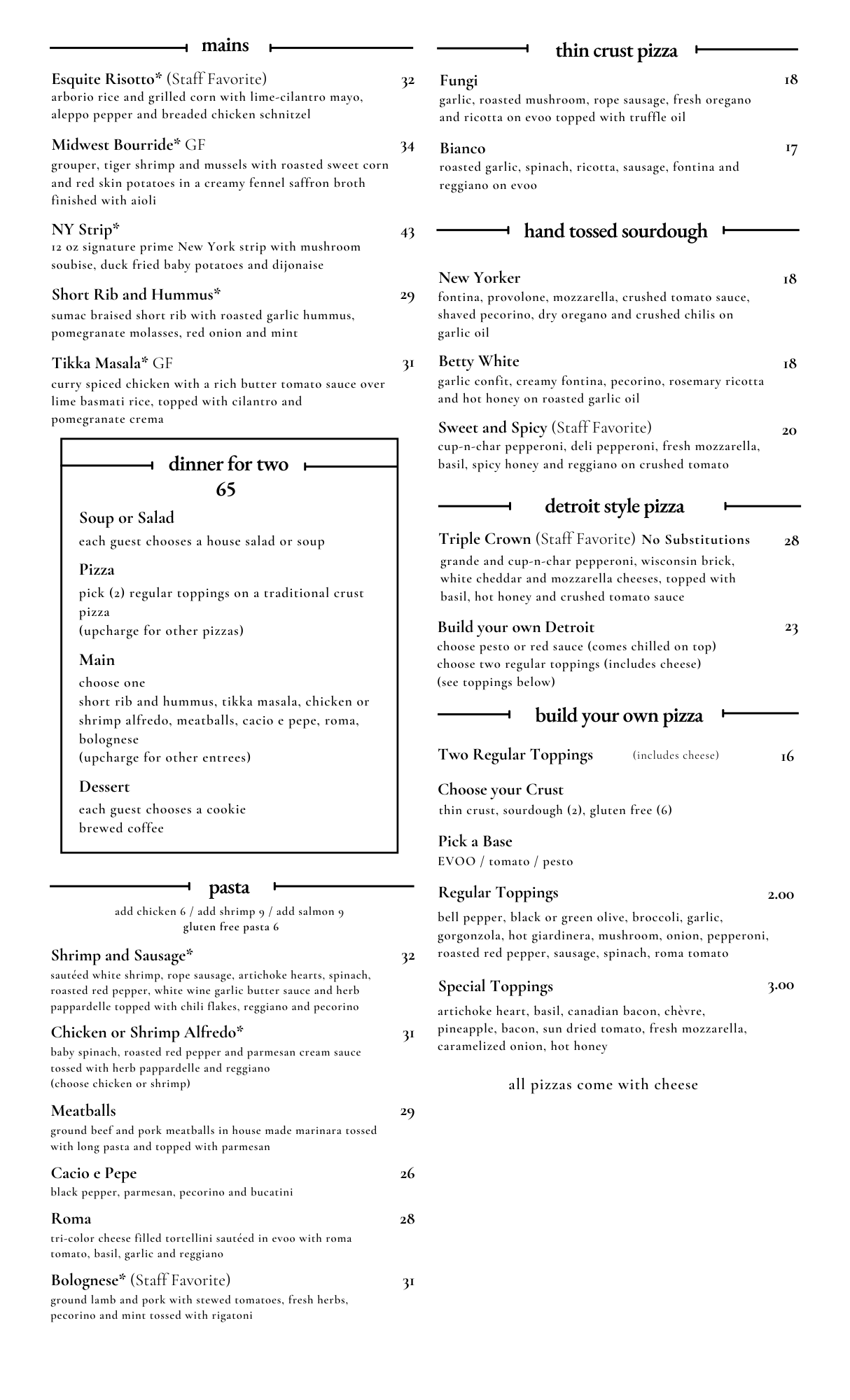 *foods are cooked to order. consuming raw or undercooked foods may increase your chance of food borne illness.